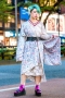Harajuku Street Style w/ Green Hair, Floral Kimono, WEGO Lace Dress & Takeshita Dori Platform Sandals